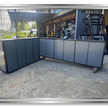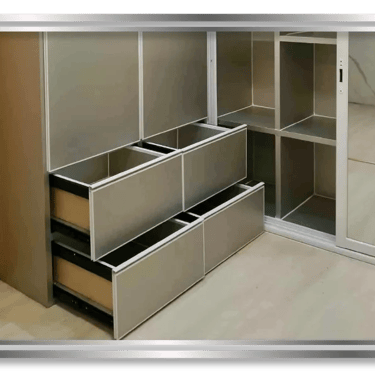Custom aluminum cabinets in wall-mounted, freestanding, and modular configurations, resistant to moisture, rust, and daily wear.